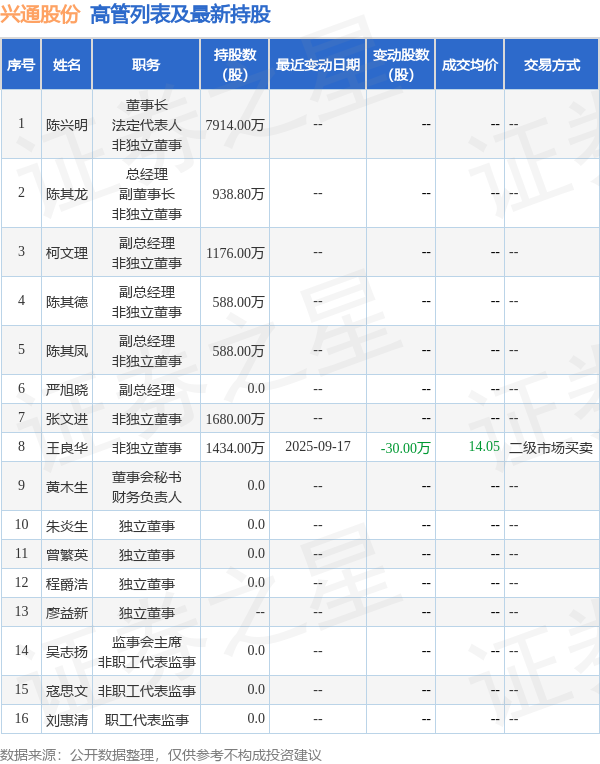 兴通股份近半年内的董监高及核心技术人员增减持详情如下: