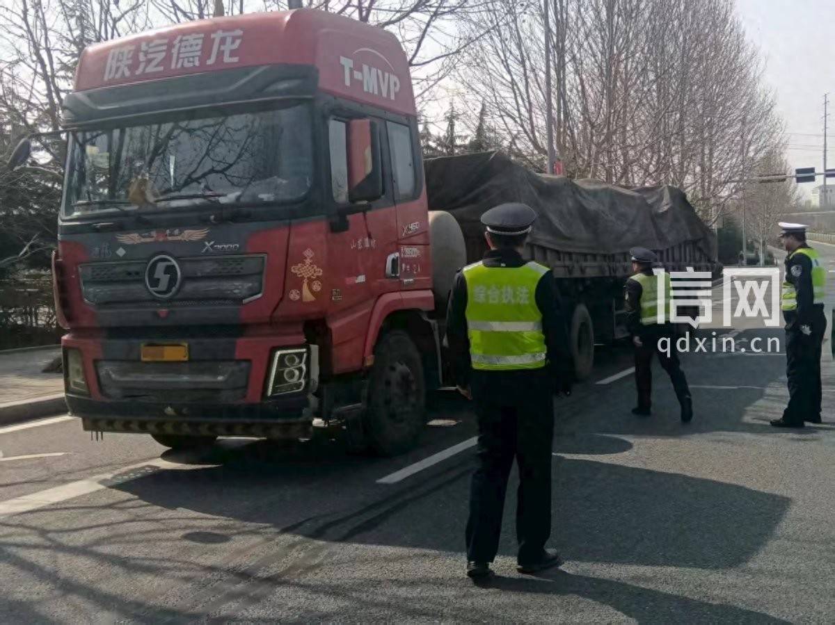 青岛公安交管联合多部门开展严查货车超限超载行动(来源:青岛交警)